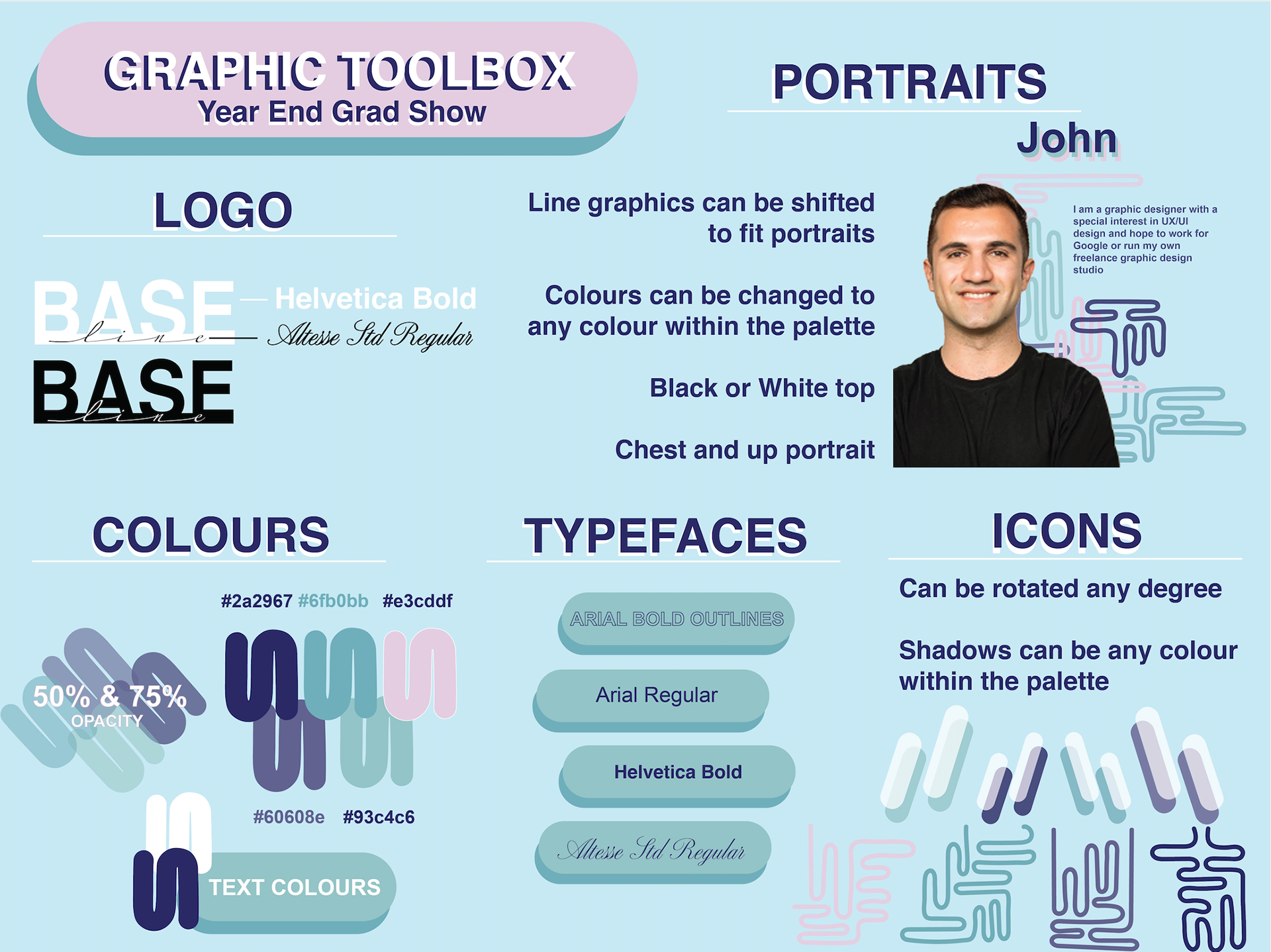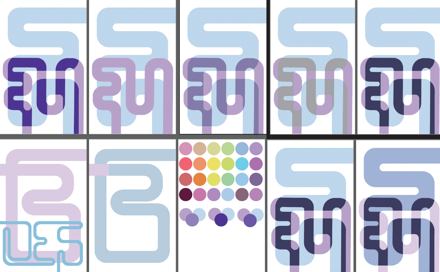 Tackling colour is another important step, specifically finding light colours and could overlap well. The overlapping lines of different colours is a reference to the proposed baseline concept of peaks and valleys. An individual designer is unique in their journey and can cross paths with another and create something new without losing their own identity.